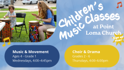 We have 2 classes available for children where they develop music and drama skills in preparation for the Spring musical. Music & Movement is for ages 4-grade 1 on Wednesdays, 4:00-4:45pm starting Jan 14. Choir & Drama is for grades 2-6 on Thursdays, 4:00pm-6:00pm starting Jan 15.