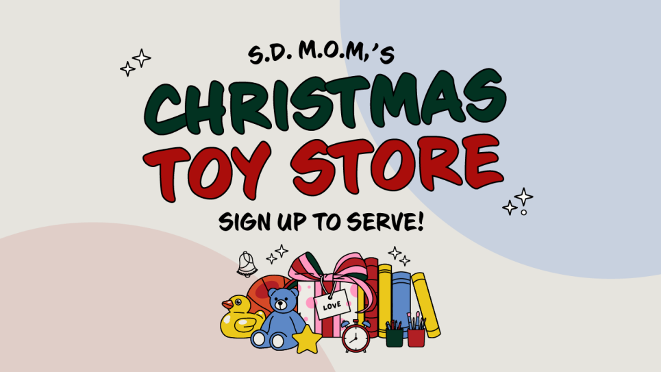 On December 13 we are hosting a Christmas toy store filled with toys donated throughout November for local military families though our mission partner SD MOMs (San Diego Military Outreach Ministries). Help bless families with this amazing toy store by signing up to serve!